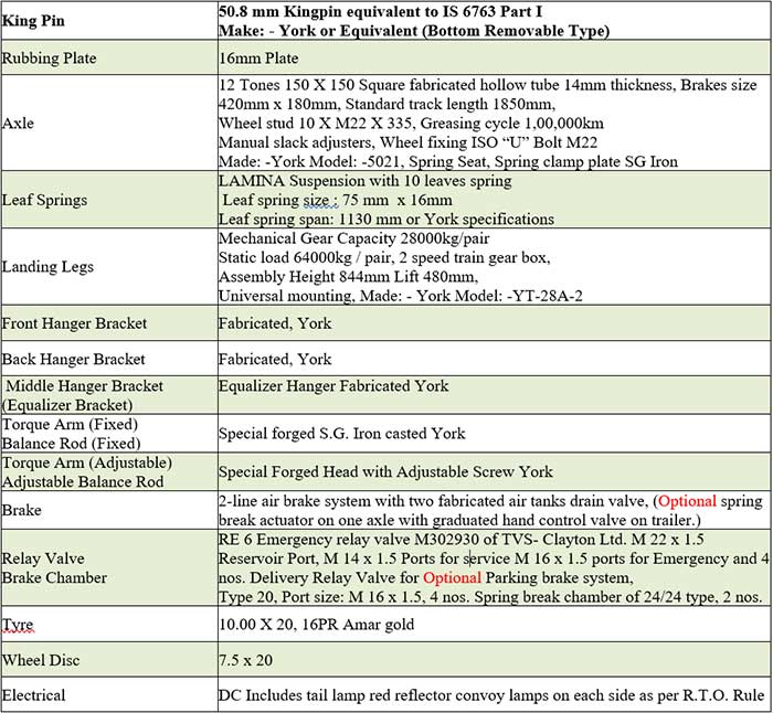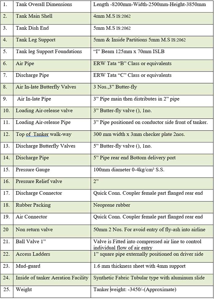 Technical Data For Flay Ash Trailers( Bulker )