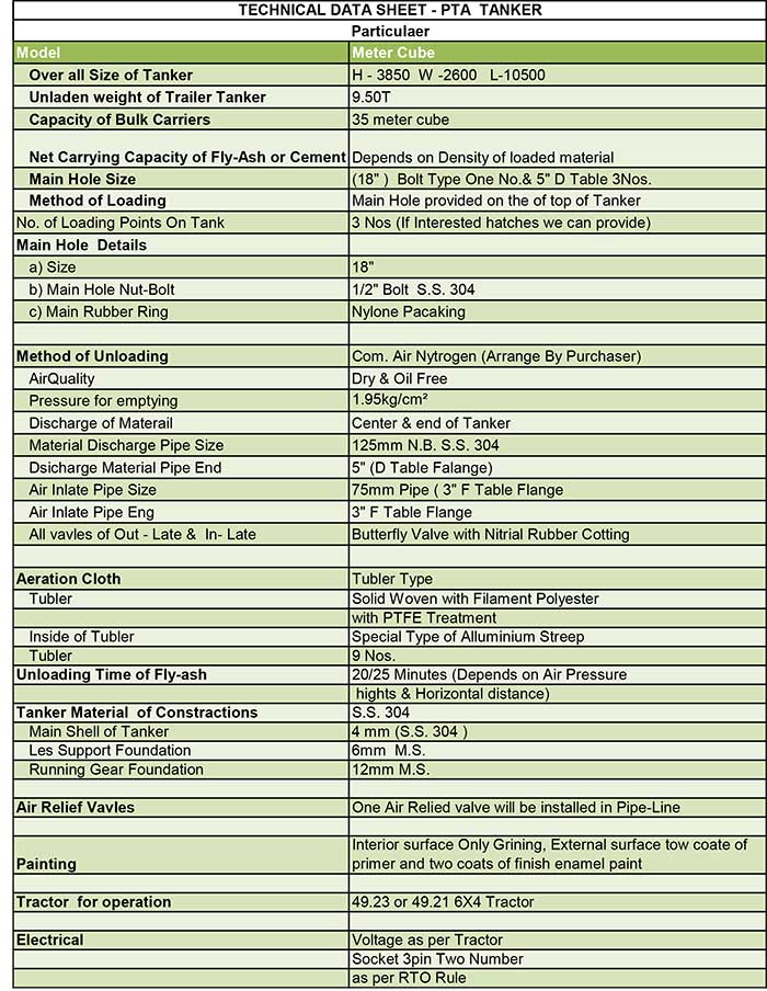 Technical Data For Tip Tanker
